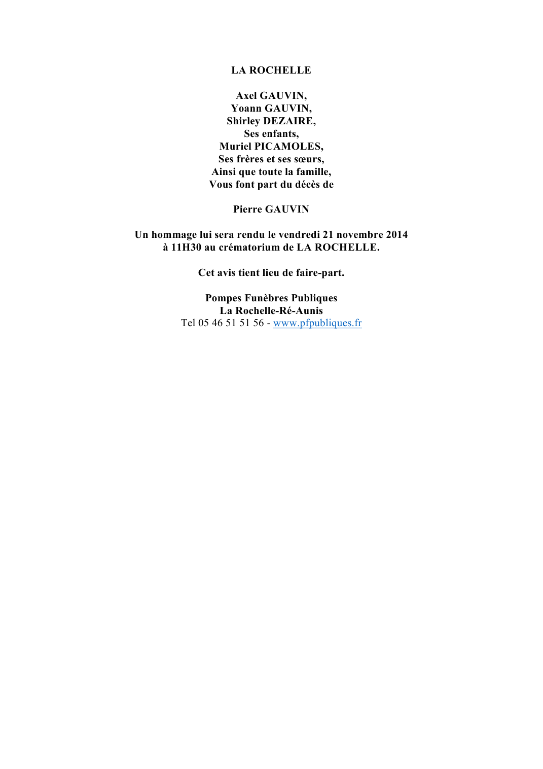Décédé à La Rochelle (17000, France) le vendredi 14 novembre 2014 à l'âge de 54 ans