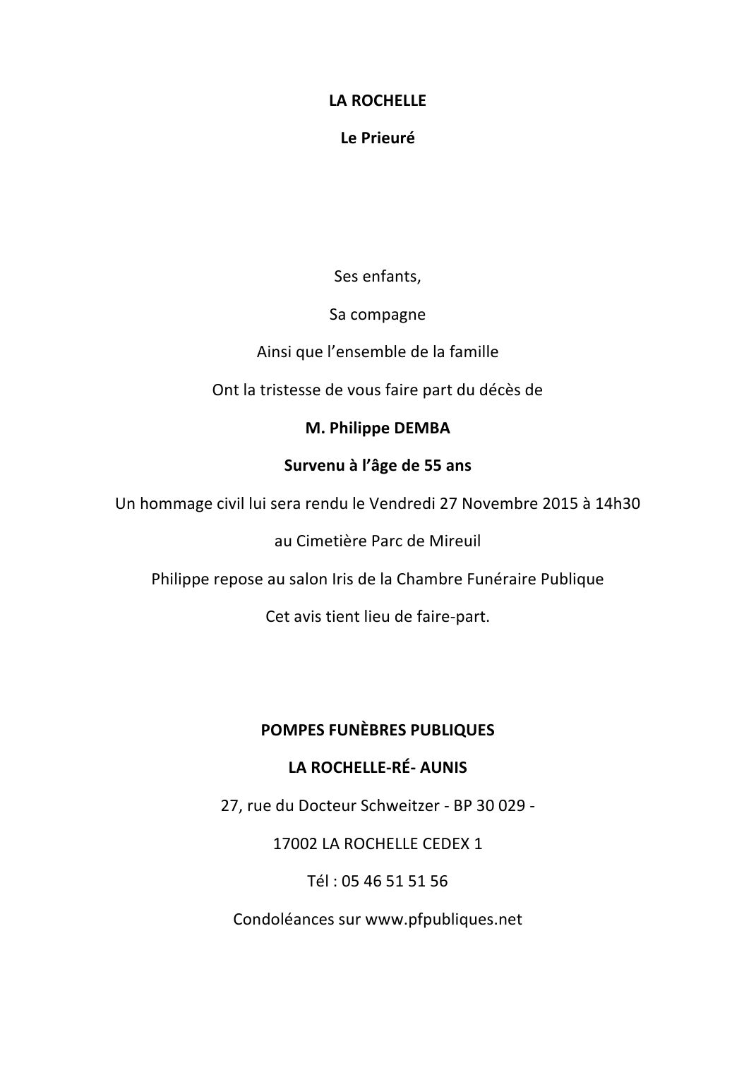 Décédé à La Rochelle (17000, France) le dimanche 22 novembre 2015 à l'âge de 55 ans