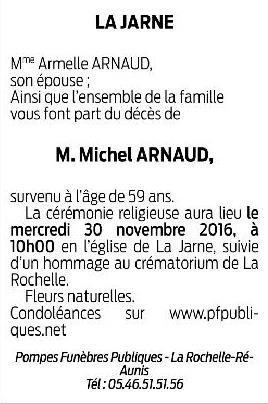 Décédé à La Rochelle (17000, France) le vendredi 25 novembre 2016 à l'âge de 59 ans