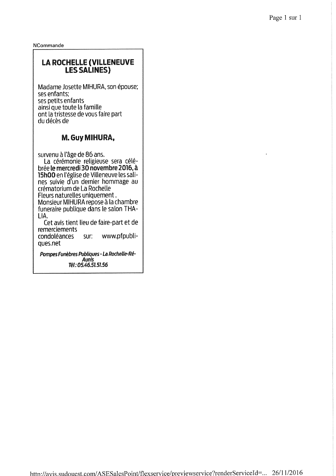 Epoux de Madame Josette MIHURA