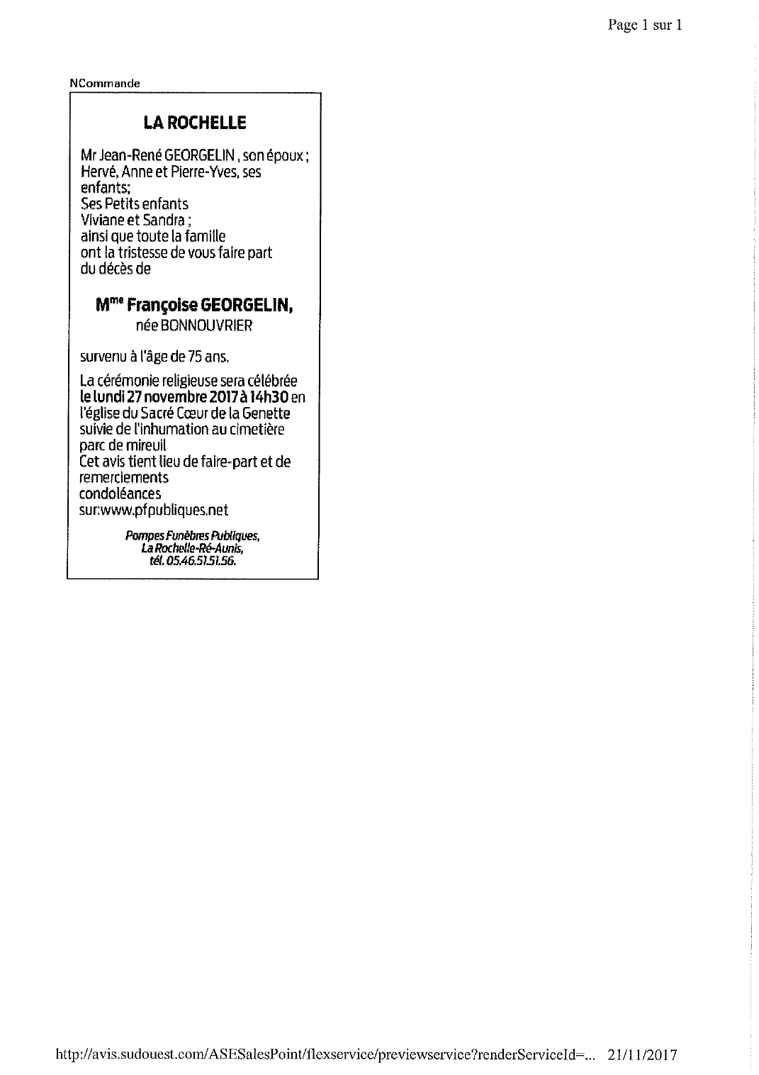 Madame Françoise GEORGELIN née BONNOUVRIER