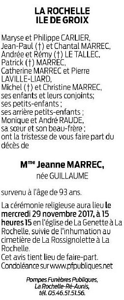 Décédée à La Rochelle (17000, France) le samedi 25 novembre 2017 à l'âge de 93 ans