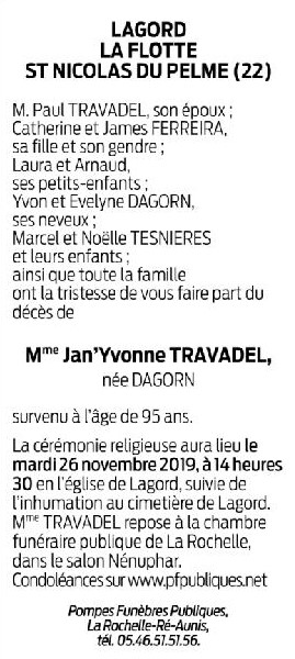Madame Jan'Yvonne TRAVADEL née DAGORN
