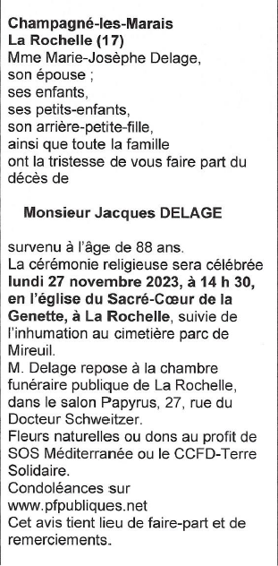 Décédé à La Rochelle (17000, France) le lundi 20 novembre 2023 à l'âge de 88 ans