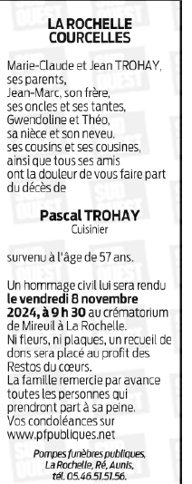 Décédé à La Rochelle (17000, France) le jeudi 24 octobre 2024 à l'âge de 57 ans