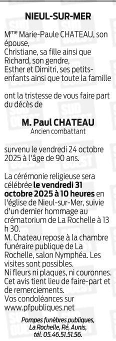 Décédé à Lagord (17140, France) le vendredi 24 octobre 2025 à l'âge de 90 ans