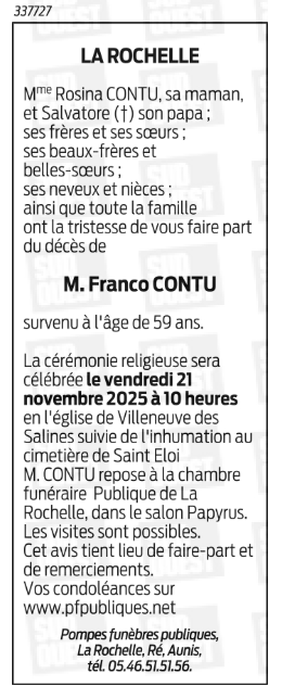 Décédé à La Rochelle (17000, France) le vendredi 14 novembre 2025 à l'âge de 59 ans