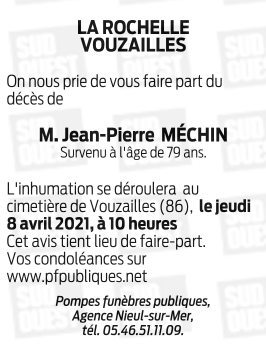 Décédé à Nieul-sur-Mer (17137, France) le mardi 30 mars 2021 à l'âge de 78 ans