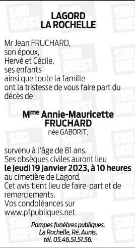 Madame Annie-Mauricette FRUCHARD née GABORIT
