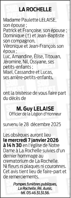 Décédé à La Rochelle (17000, France) le dimanche 28 décembre 2025 à l'âge de 95 ans