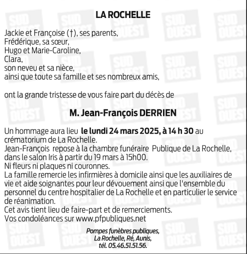 Décédé à La Rochelle (17000, France) le samedi 15 mars 2025 à l'âge de 55 ans