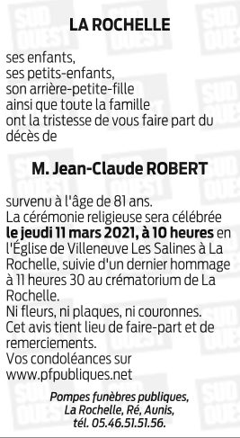 Décédé à La Rochelle (17000, France) le lundi 1 mars 2021 à l'âge de 81 ans