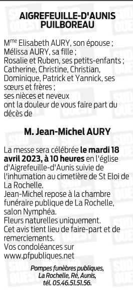 Décédé à La Rochelle (17000, France) le mercredi 12 avril 2023 à l'âge de 75 ans