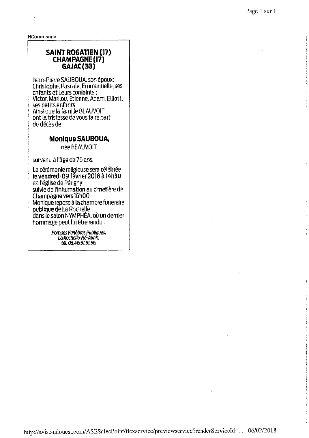 Madame Monique SAUBOUA née BEAUVOIT
