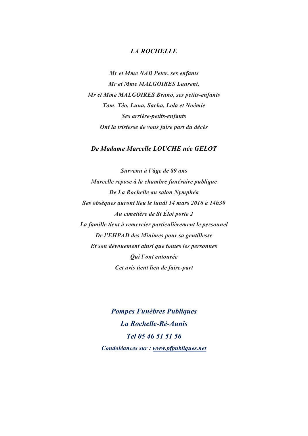 Veuve de Monsieur Pierre LOUCHE