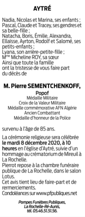 Décédé à La Rochelle (17000, France) le mardi 1 décembre 2020 à l'âge de 85 ans