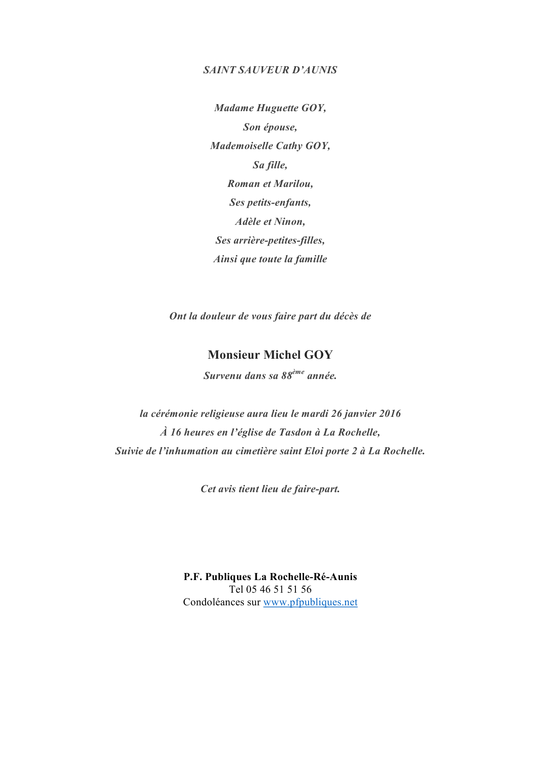 Décédé à La Rochelle (17000, France) le jeudi 21 janvier 2016 à l'âge de 87 ans