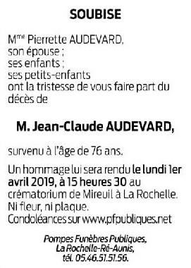 Décédé à La Rochelle (17000, France) le jeudi 28 mars 2019 à l'âge de 76 ans