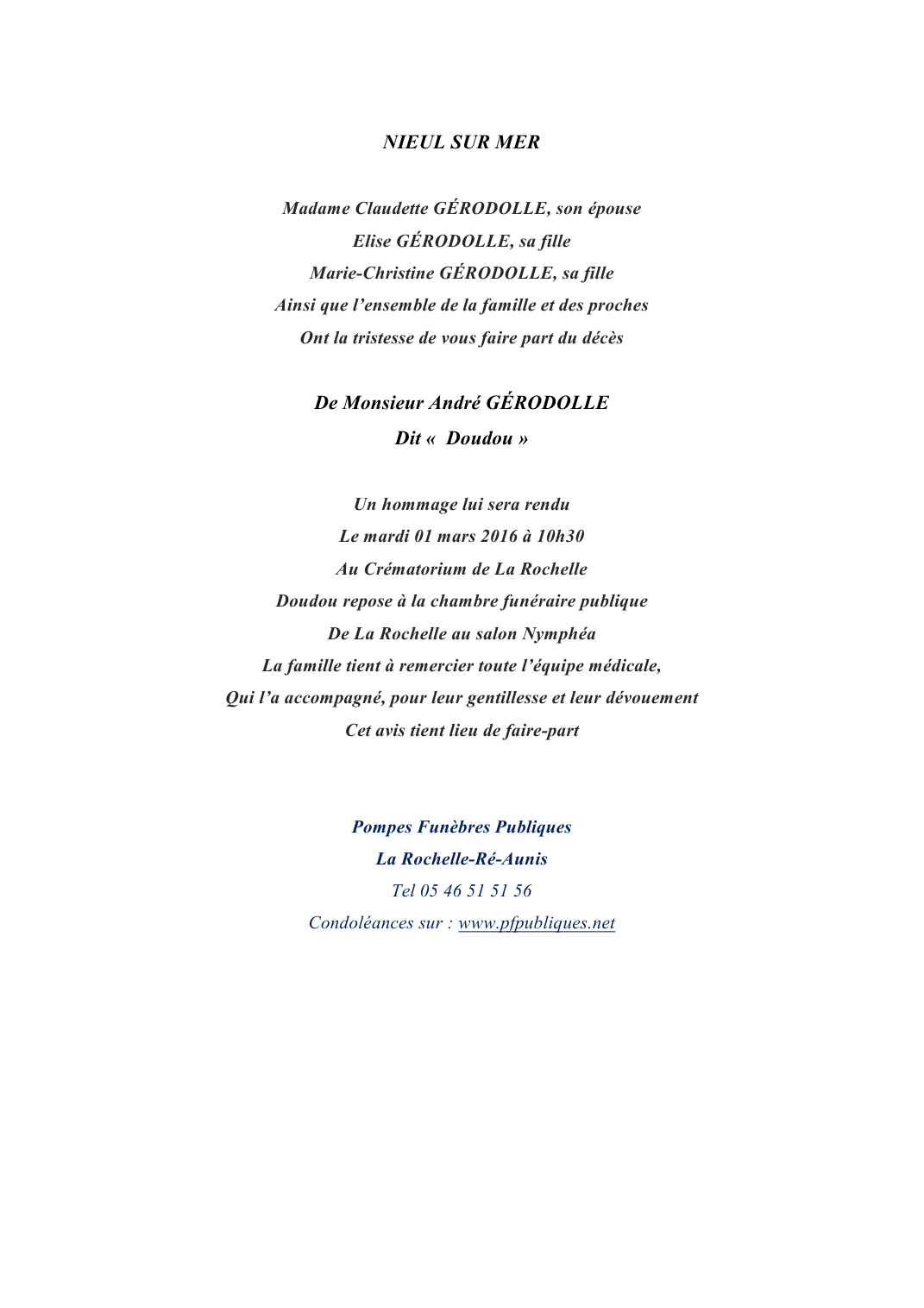 Décédé à La Rochelle (17000, France) le mercredi 24 février 2016 à l'âge de 77 ans