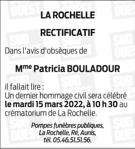 Décédée à La Rochelle (17000, France) le jeudi 3 mars 2022 à l'âge de 62 ans