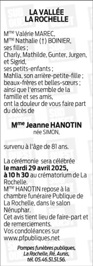 Madame Jeanne HANOTIN née SIMON