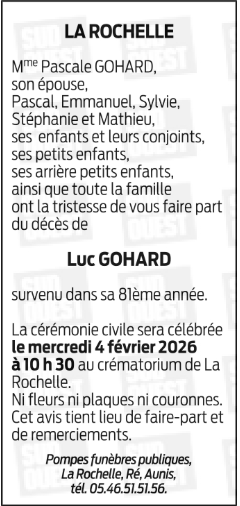 Décédé à La Rochelle (17000, France) le dimanche 25 janvier 2026 à l'âge de 80 ans