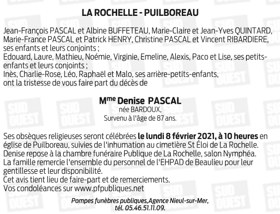 Madame Denise PASCAL née BARDOUX