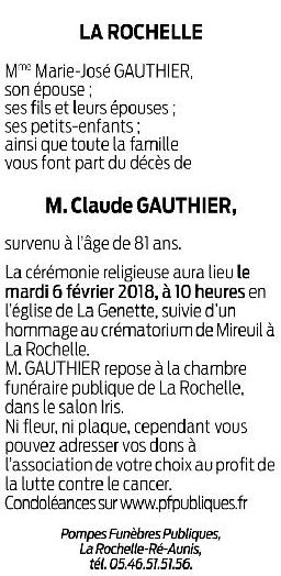 Décédé à La Rochelle (17000, France) le mercredi 31 janvier 2018 à l'âge de 81 ans