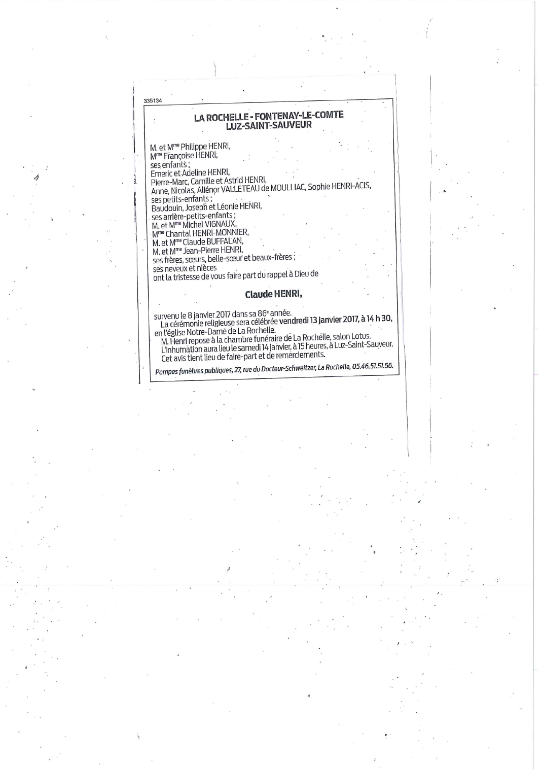 Décédé à L'Houmeau (17137, France) le dimanche 8 janvier 2017 à l'âge de 85 ans