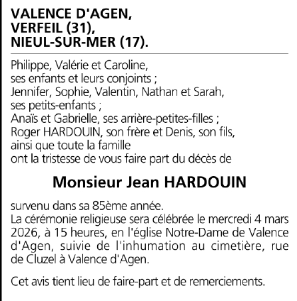Veuf de Madame Raymonde HARDOUIN