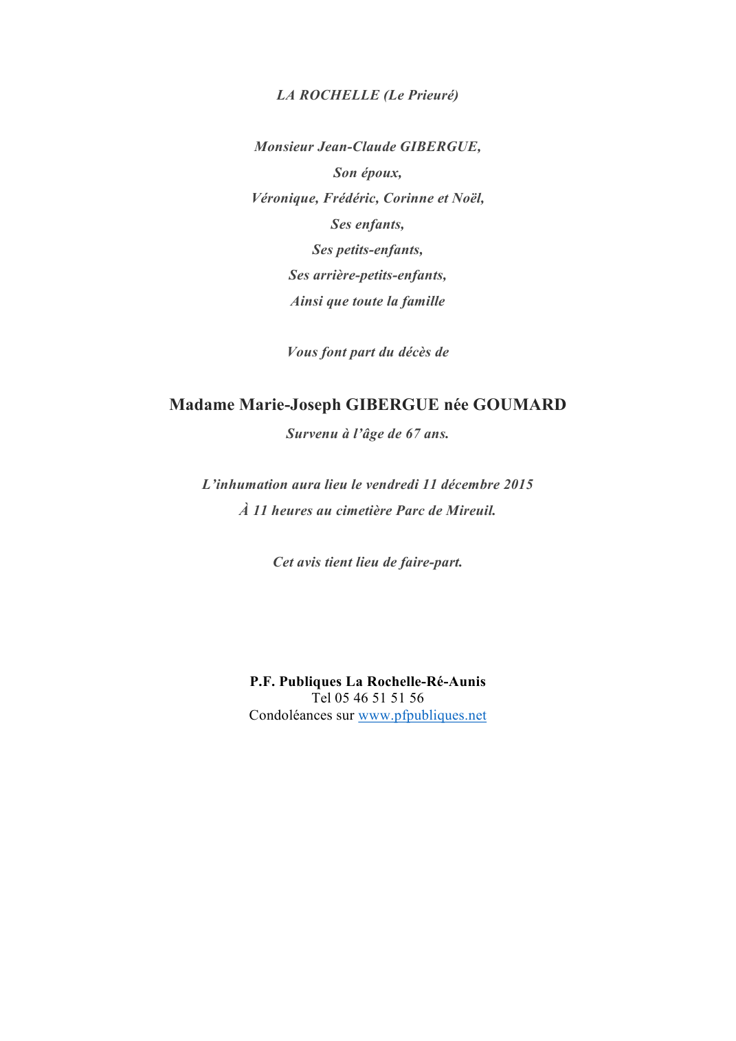 Epouse de Monsieur Jean-Claude GIBERGUE