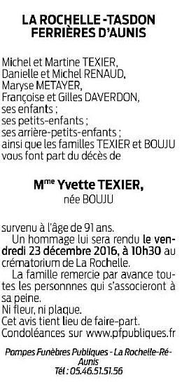 Madame Yvette TEXIER née BOUJU