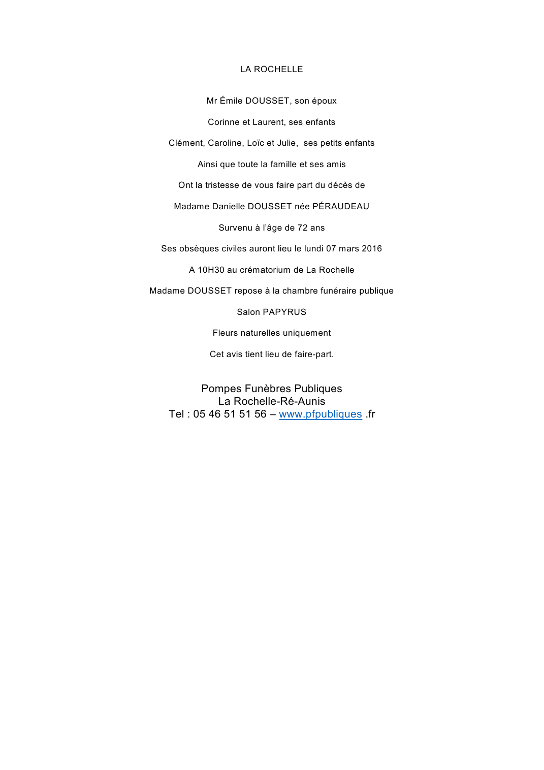 Madame Danielle DOUSSET née PÉRAUDEAU