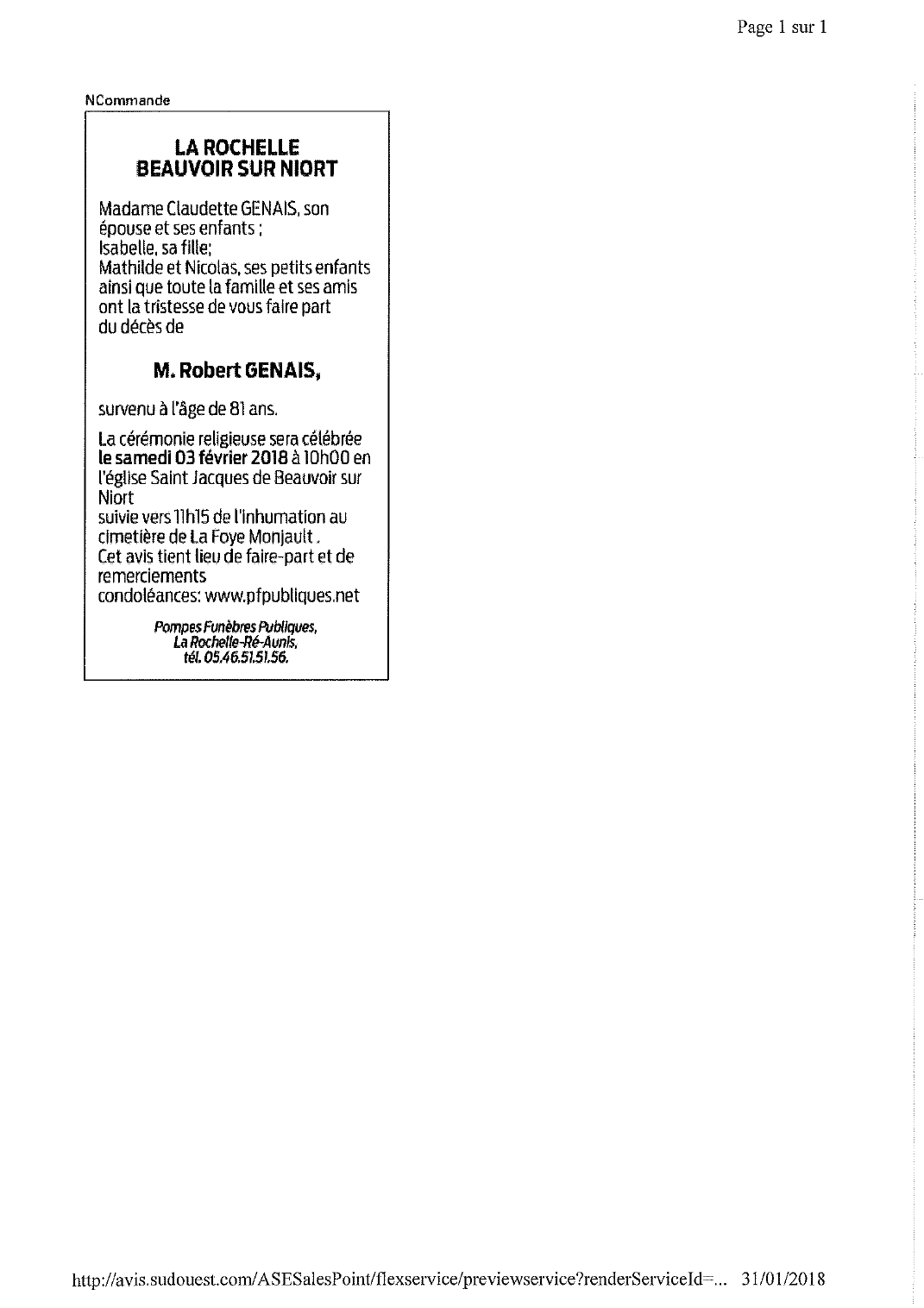 Décédé à Charron (17230, France) le mardi 30 janvier 2018 à l'âge de 81 ans