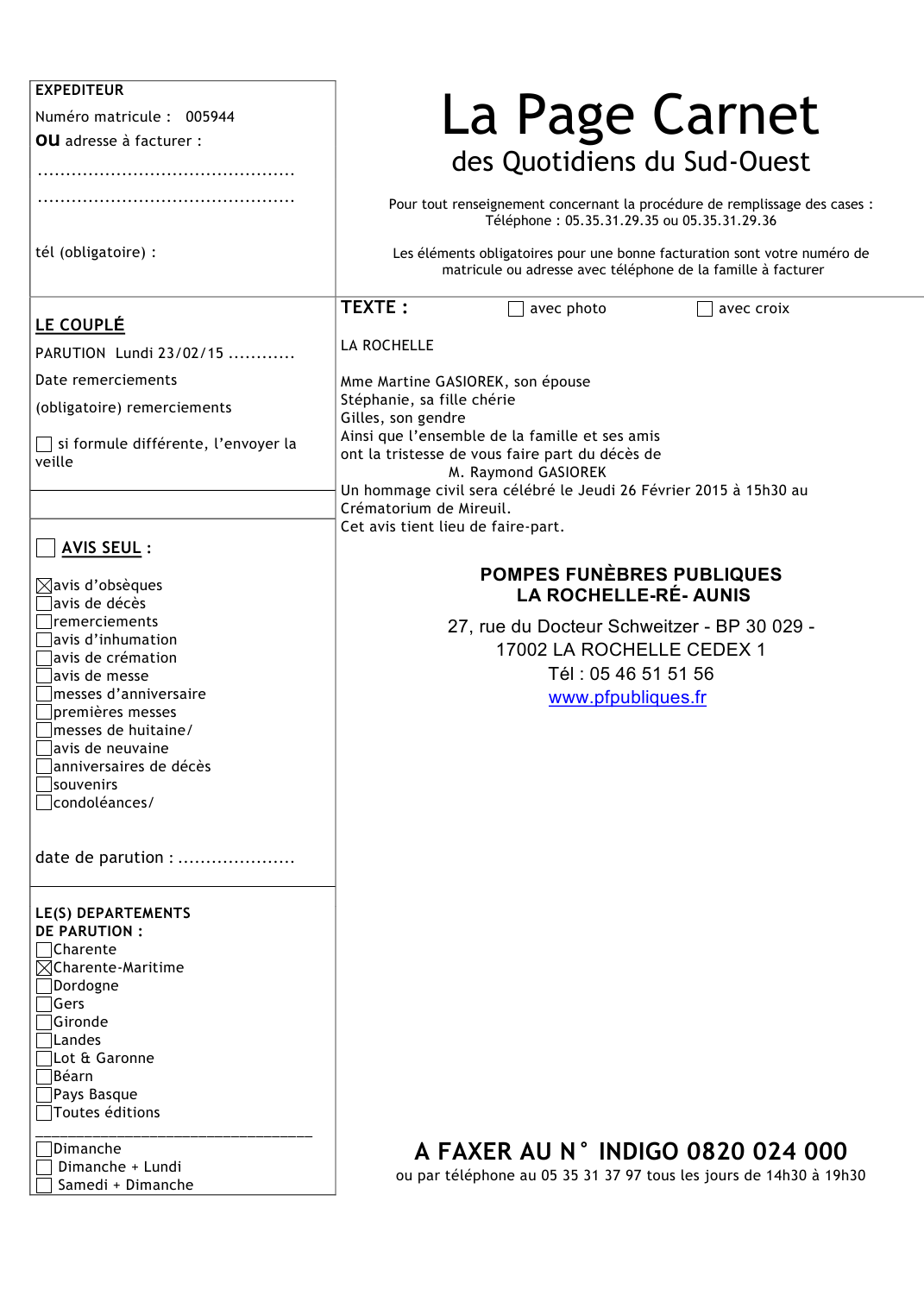 Annonce nécrologique