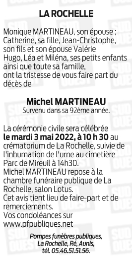 Décédé à La Rochelle (17000, France) le vendredi 22 avril 2022 à l'âge de 91 ans
