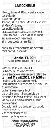 Madame Annick PUECH née BRUMAULD DES HOULIÈRES