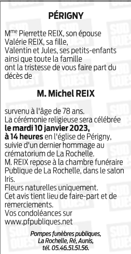 Décédé à Poitiers (86000, France) le samedi 31 décembre 2022 à l'âge de 78 ans