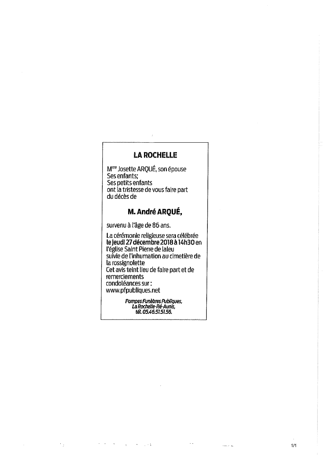 Décédé à La Rochelle (17000, France) le mercredi 19 décembre 2018 à l'âge de 86 ans
