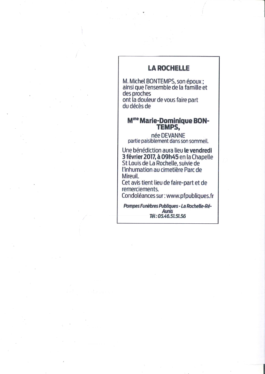 Madame Marie-Dominique BONTEMPS née DEVANNE