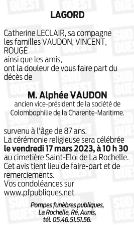 Décédé à La Rochelle (17000, France) le jeudi 9 mars 2023 à l'âge de 87 ans