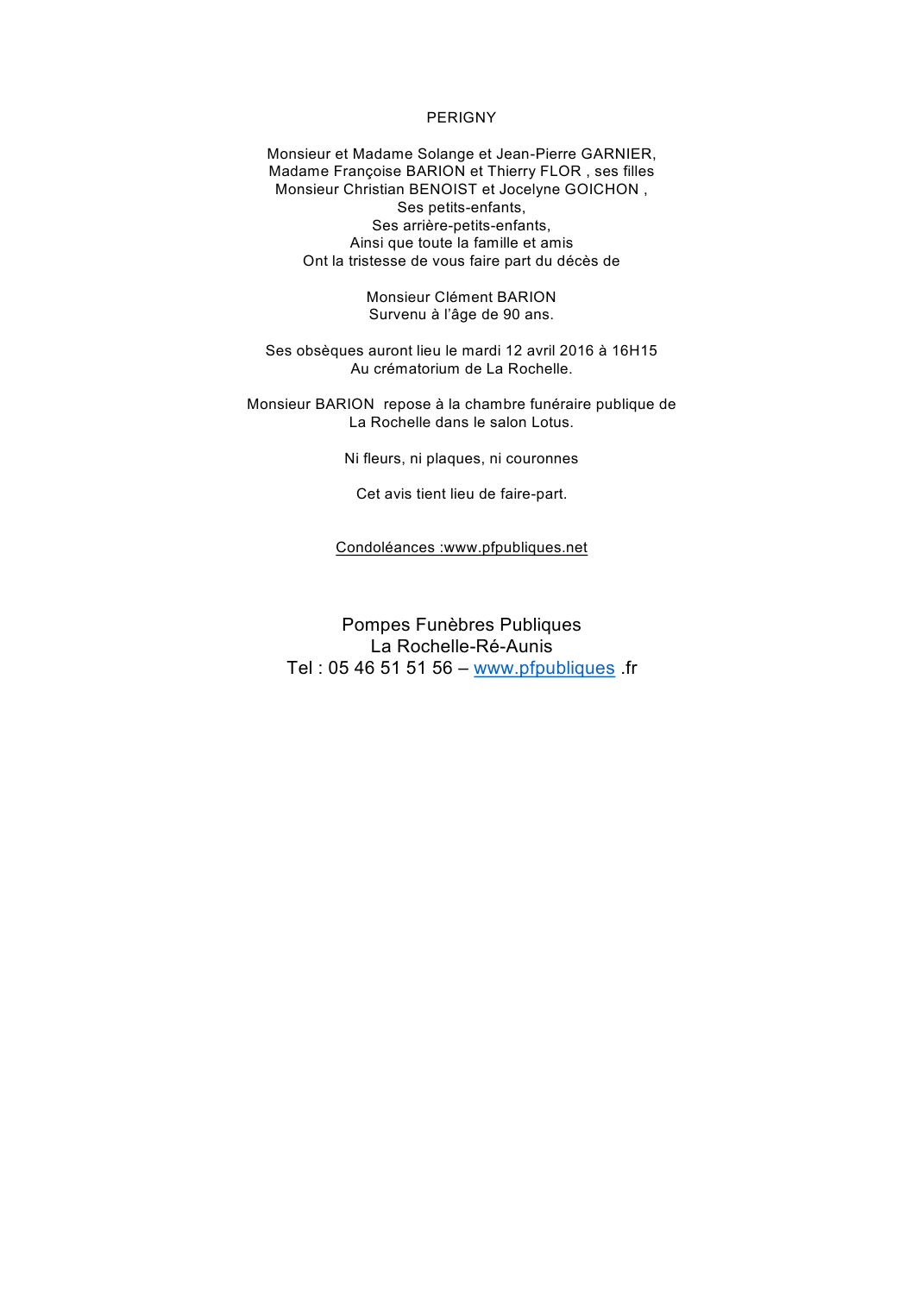 Décédé à La Rochelle (17000, France) le jeudi 7 avril 2016 à l'âge de 90 ans