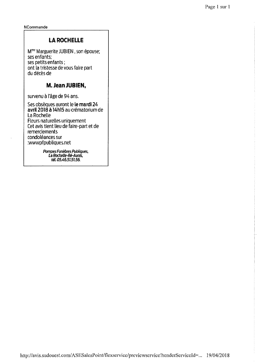 Epoux de Madame Marguerite JUBIEN