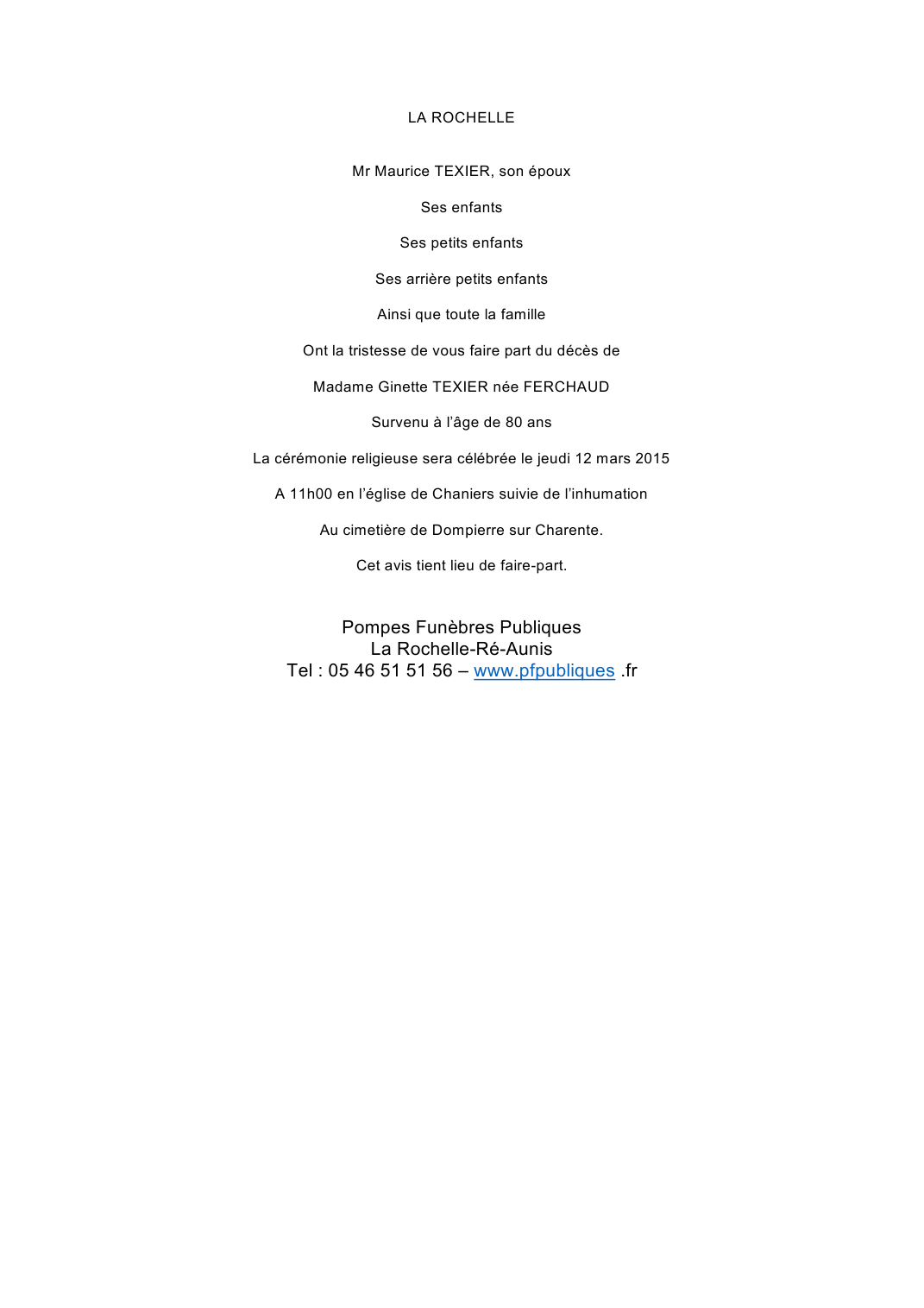 Epouse de Monsieur Maurice TEXIER