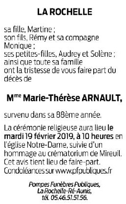 Veuve de Monsieur Robert ARNAULT