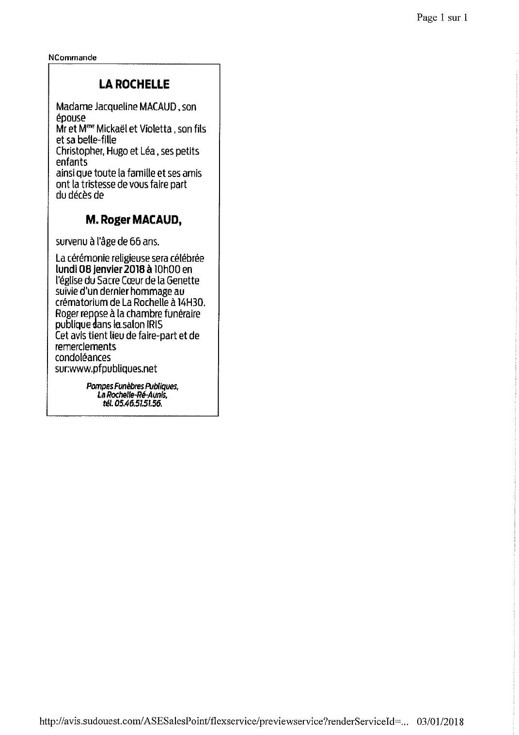 Annonce nécrologique
