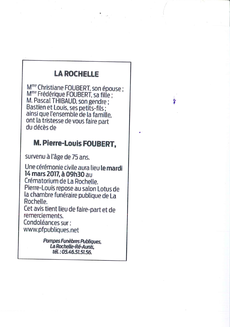 Décédé à La Rochelle (17000, France) le mercredi 8 mars 2017 à l'âge de 75 ans