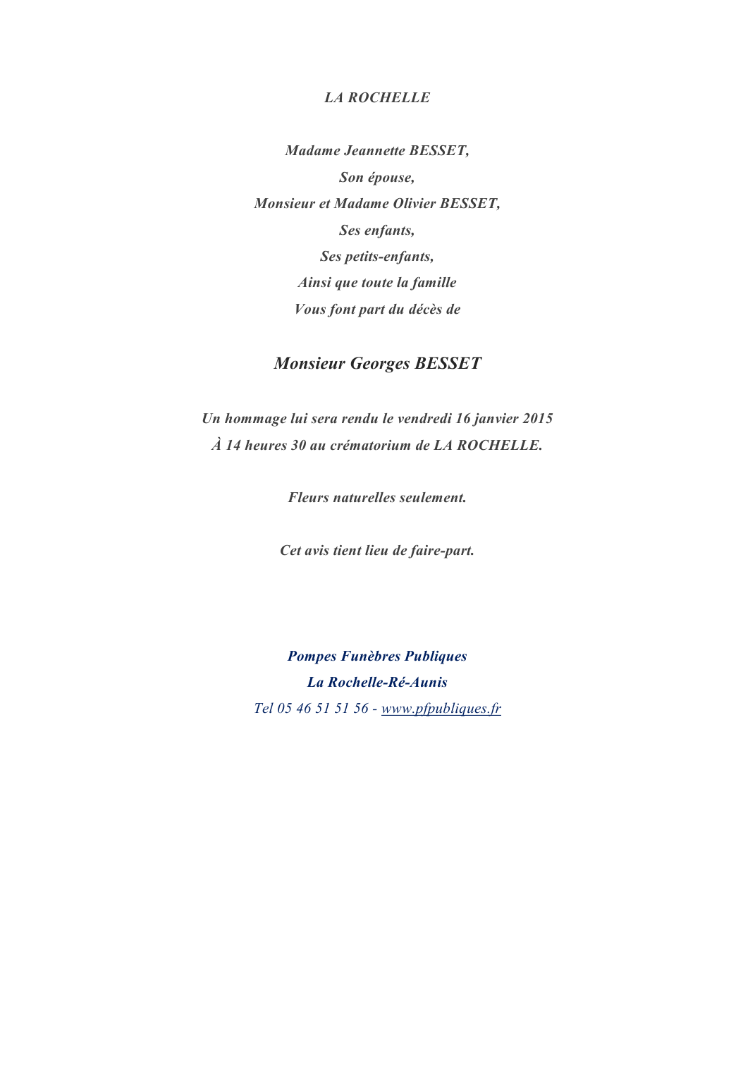 Décédé à Charron (17230, France) le samedi 10 janvier 2015 à l'âge de 88 ans