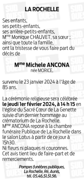 Madame Michèle ANCONA née MORICE