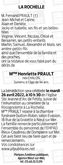 Veuve de Monsieur Fernand PRAULT